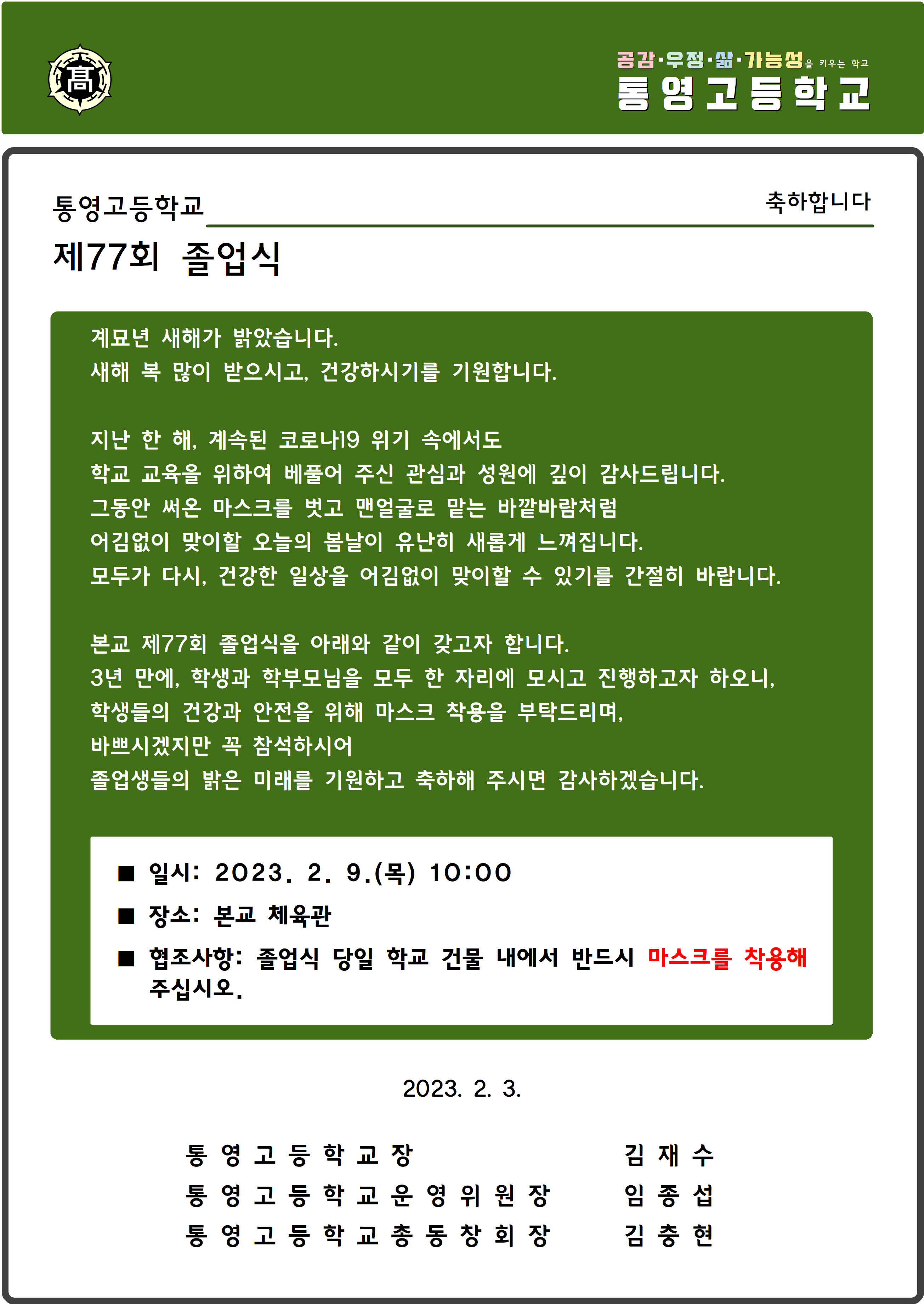 통영고등학교 2022. 졸업식(제77회) 안내장_제출용.png