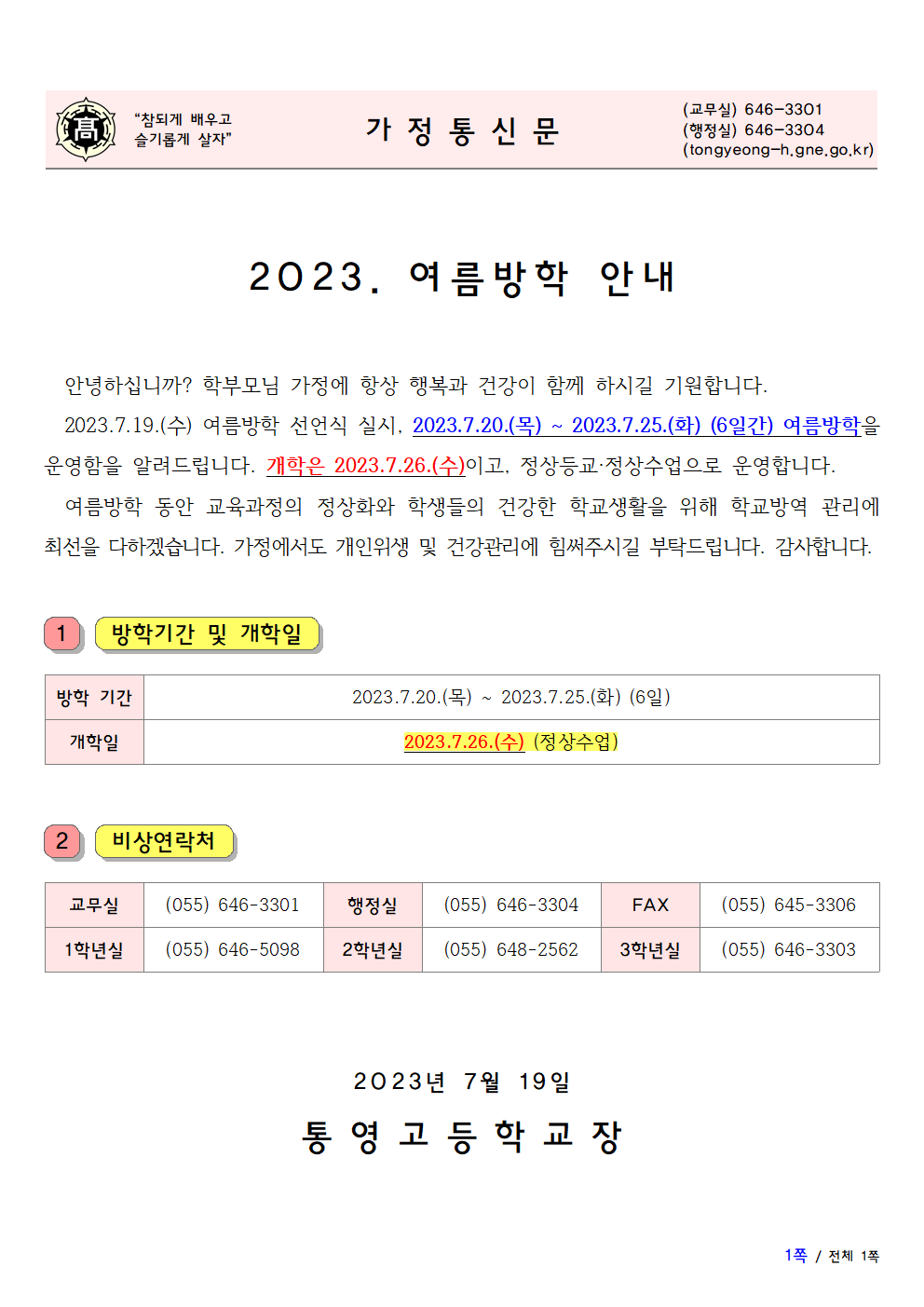 2023. 여름방학 안내]